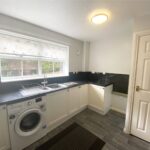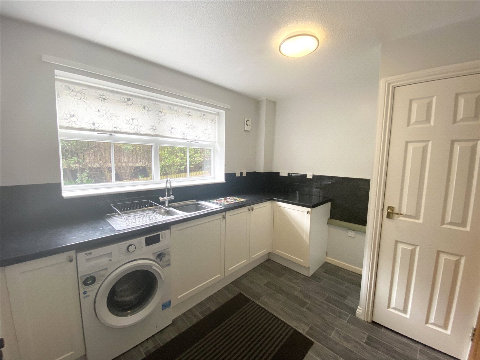 Fitted with a range of wall and base units with work surfaces over, electric oven with gas hob, space for washing machine and fridge/freezer, stainless steel sink and drainer unit, central heating radiator, double glazed window.