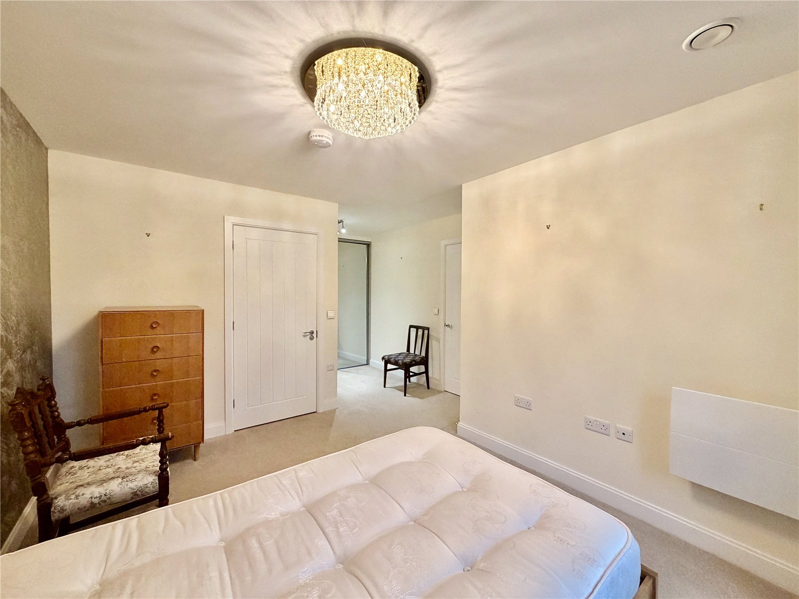 Integrated storage cupboard, Space for washing machine, Electric radiator.