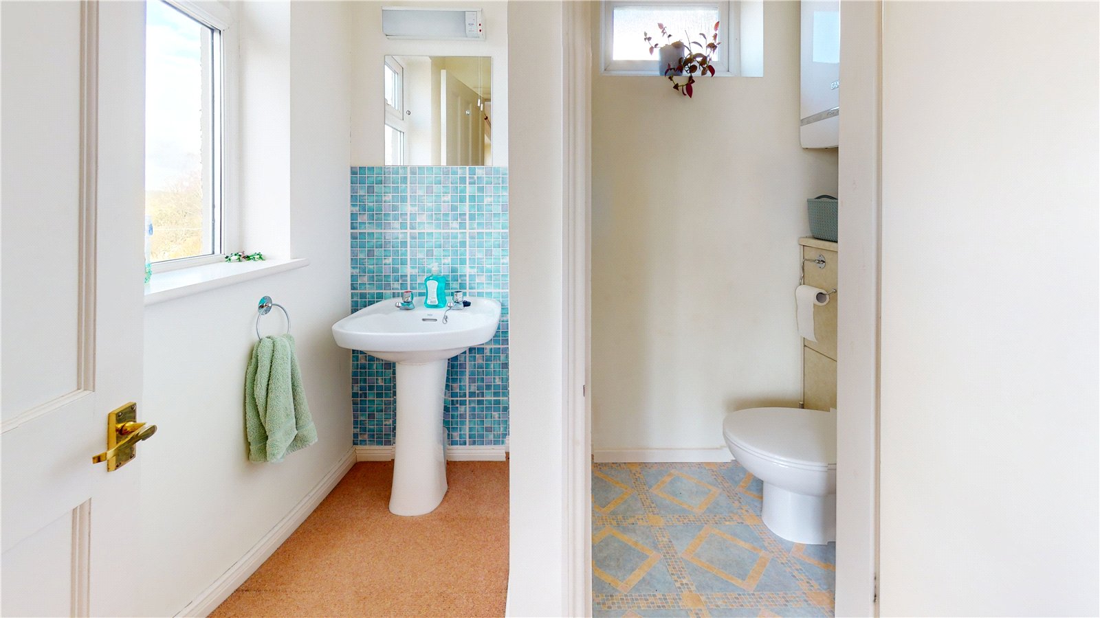 WC, wash hand basin, wall mounted central heating boiler.