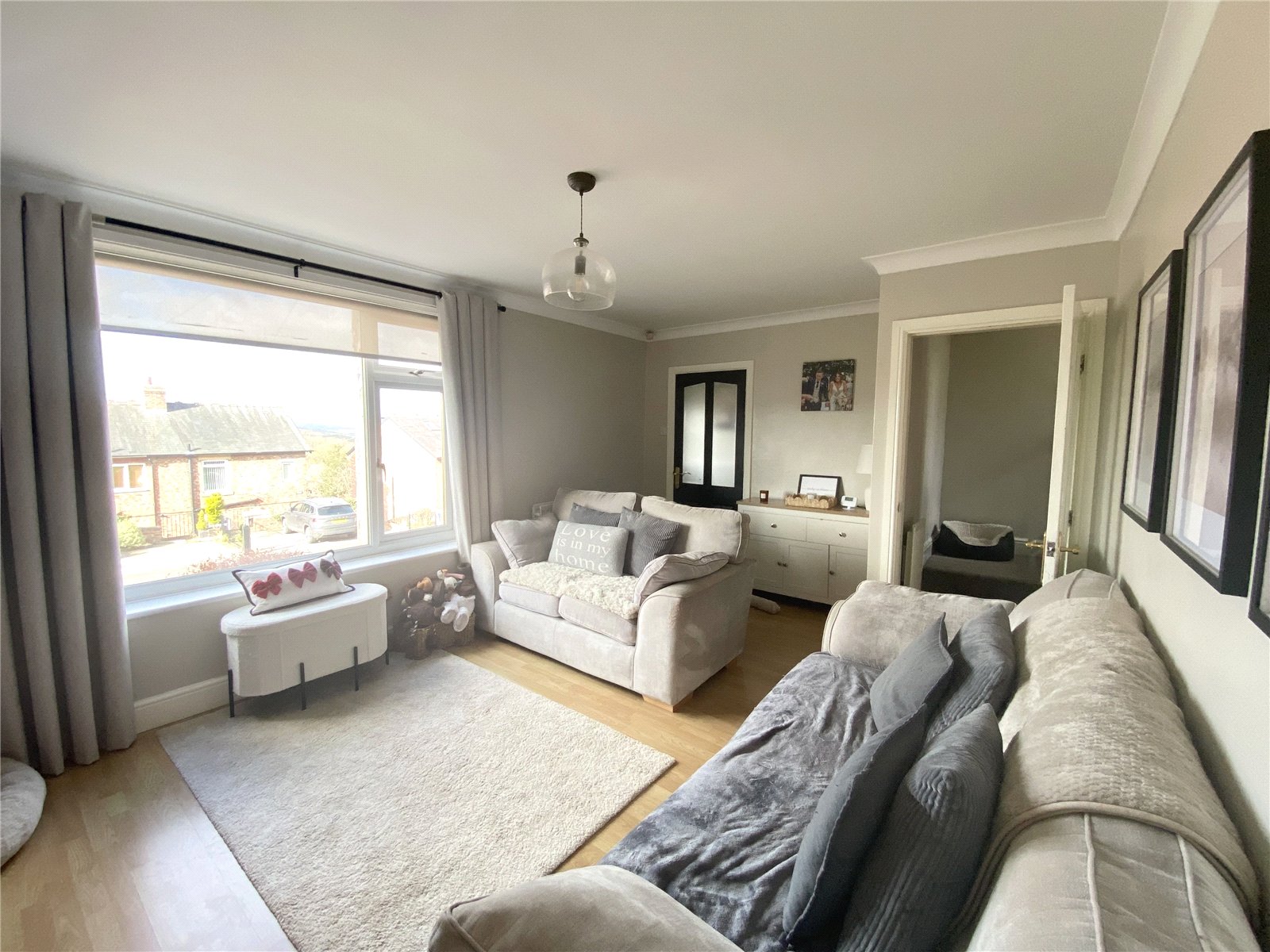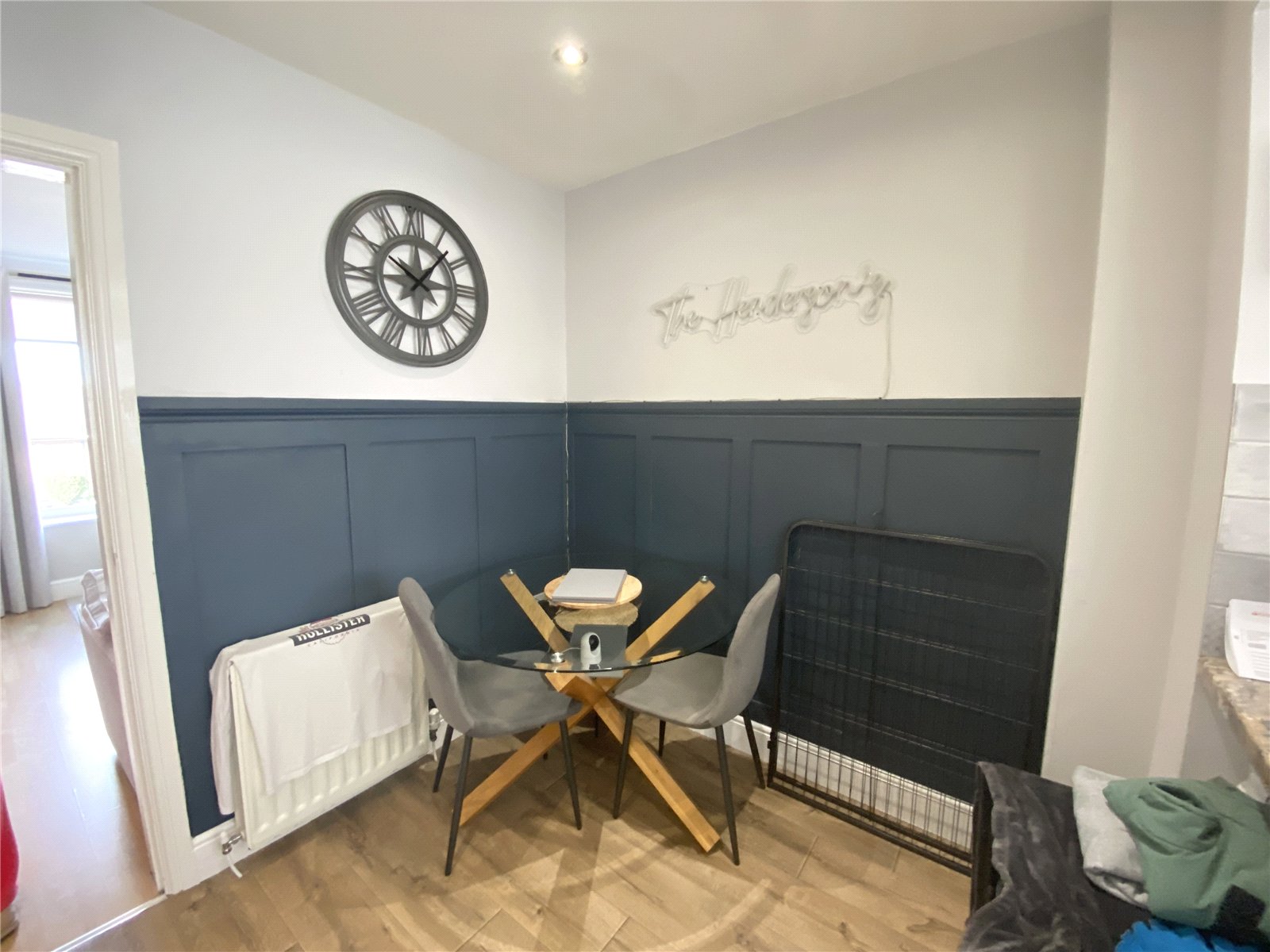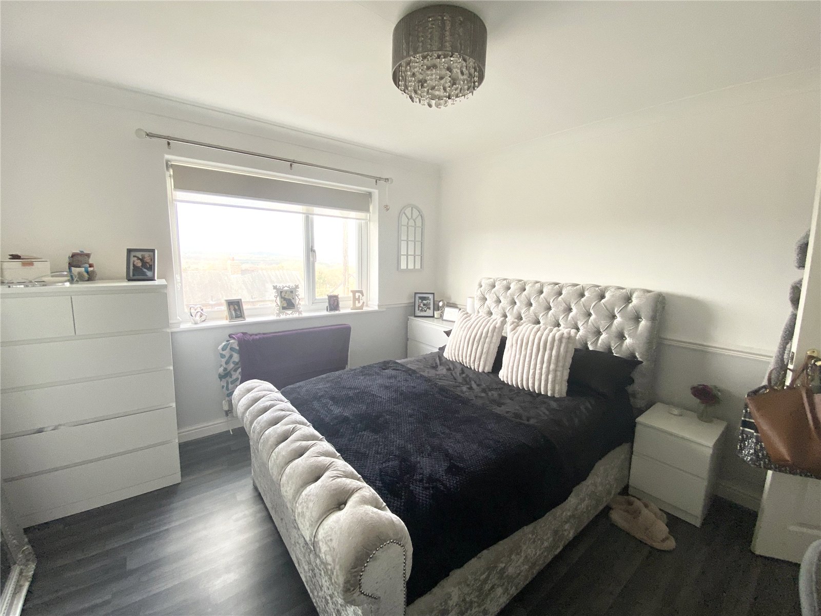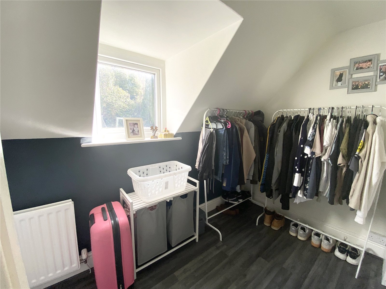 Feature fireplace, laminate flooring, central heating radiator, double glazed window.
